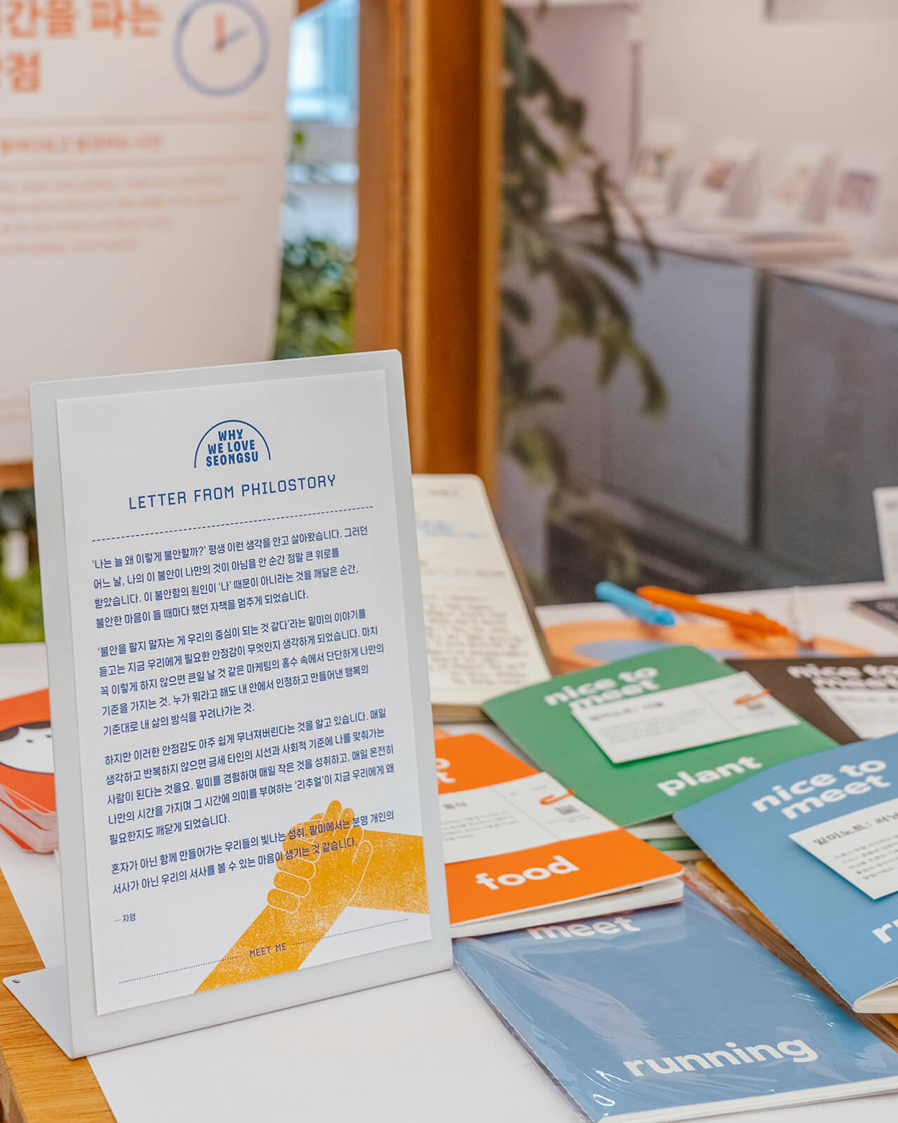 필로스토리와 현대백화점 목동점이 함께한 ‘Why We Love Seongsu’는, 성수동의 스몰 브랜드와 크리에이터들을 소개하며 성수동만의 로컬 문화를 전달하는 팝업 전시·마켓 프로젝트입니다. 영수증과 스탬프의 그래픽 모티프를 기반으로 포스터, 리플렛, 부스 사인물 등 행사 전반에 필요한 그래픽 디자인을 전개했습니다.